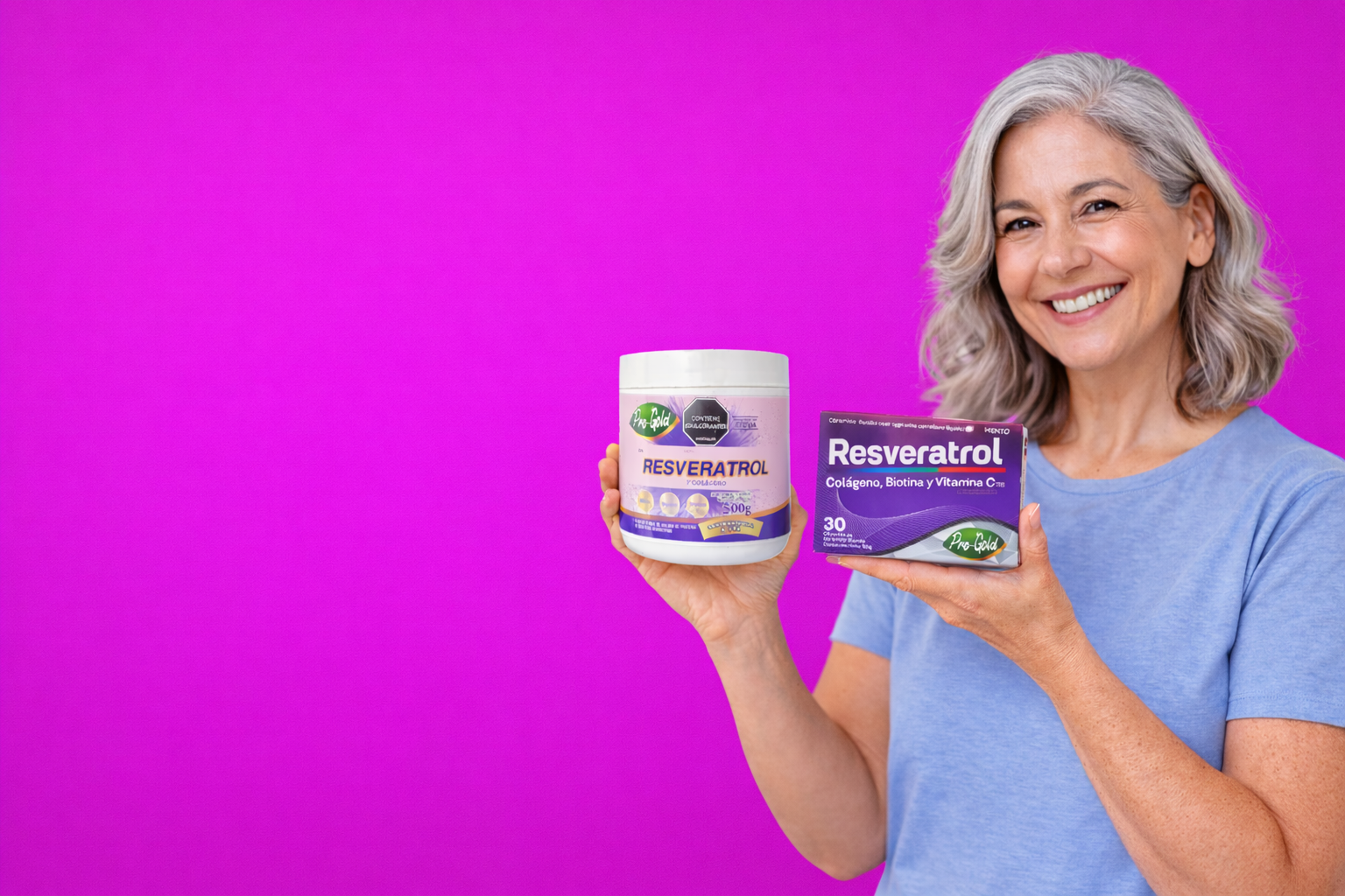 Fórmula con resveratrol que contribuye al bienestar celular y al cuidado de la piel, ayudando a mantener vitalidad y equilibrio en esta etapa.